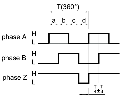 Some incremental encoders also have additional differential signals, called “/A”, “/B” and “/Z”. These signals are inverted “A”, “B” and “Z” signals. Controllers can compare each pair (“A” must be equal to inverted “/A”) to ensure that there is no error during the transmission.